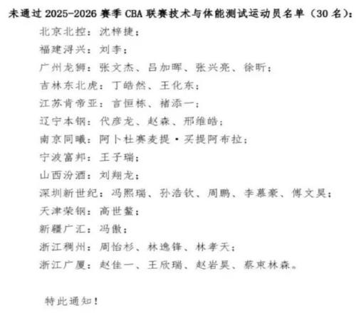 不久前有媒体发出CBA体测未能通过球员的名单,我们看到多达30人。球迷们比较熟悉北控队的沈梓捷,辽宁队的代彦龙、赵森、邢维皓,深圳队的周鹏、李慕豪,孙浩钦等人均未通过,他们后续将进行补测。