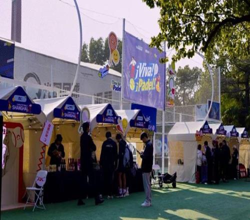 江湾国际板式网球中心室外草坪上的“Viva Padel西班牙集市”,成为充满活力的潮流聚集地。现场不仅提供地道的LA ENCINA伊比利亚火腿、奥兰小红帽桑格利亚和热红酒、歪马送酒等西班牙风味美酒小食,也汇聚了如JSC、吾岛酸奶、BUND FIVE外滩5号咖啡馆等健康生活方式品牌,更有潮流运动社区CrossElite、上海勇士美式橄榄球队前来助阵。这里既是能量补给站,也是连接文化、品牌与消费者的社交空间。
