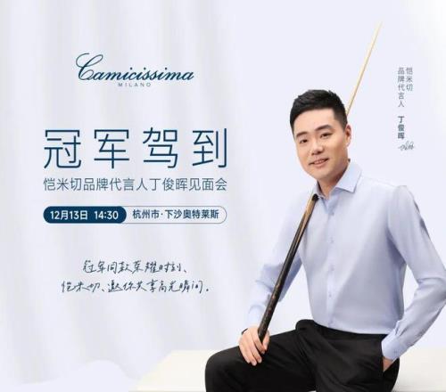 12月13日,一位真正的冠军——丁俊晖,将带着他的故事与风采,与他的冠军单品,“价”临杭州下沙。