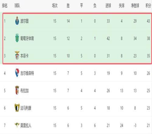 截至目前,本轮葡超的比赛已经全部结束,加上葡萄牙体育,葡超传统3强都拿到了3分,积分榜上的形势,也没有发生变化。如今波尔图依然排名第一,他们领先葡萄牙体育5分,而本菲卡则落后榜首8分,目前位居第三。
