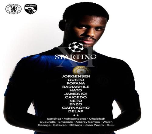 北京时间1月22日04:00,欧冠联赛阶段的一场对决。切尔西坐镇主场,迎战帕福斯。赛前,切尔西的阵容公布如下: